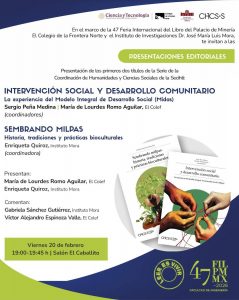 El libro Sembrando milpas. Historia, tradiciones y prácticas bioculturales fue presentado por Enriqueta Quiroz del Instituto Mora durante la mesa Primeros dos títulos de la Serie de la Coordinación de Humanidades y Ciencias Sociales de la SECIHTI, mesa compartida con María de Lourdes Romo Aguilar de El Colef y comentada por Gabriela Sánchez Gutiérrez del Instituto Mora y Víctor Alejandro Espinoza Valle de El Colef.